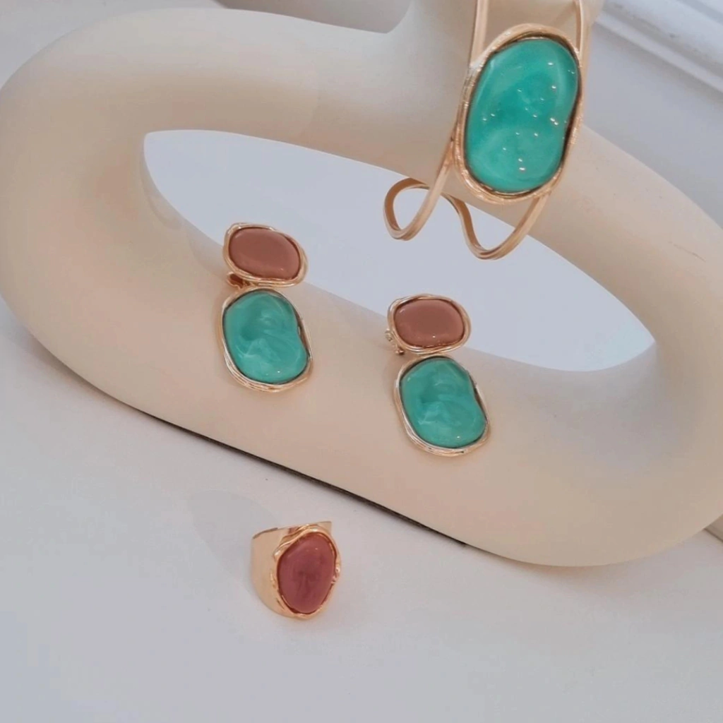 O Bracelete Tiffany Blue Banhado a Ouro 18k é a combinação perfeita entre design contemporâneo e elegância atemporal. Com sua resina na icônica tonalidade Tiffany Blue, emoldurada por delicados detalhes dourados, esta peça traz um visual que harmoniza a sofisticação com a inspiração na natureza.