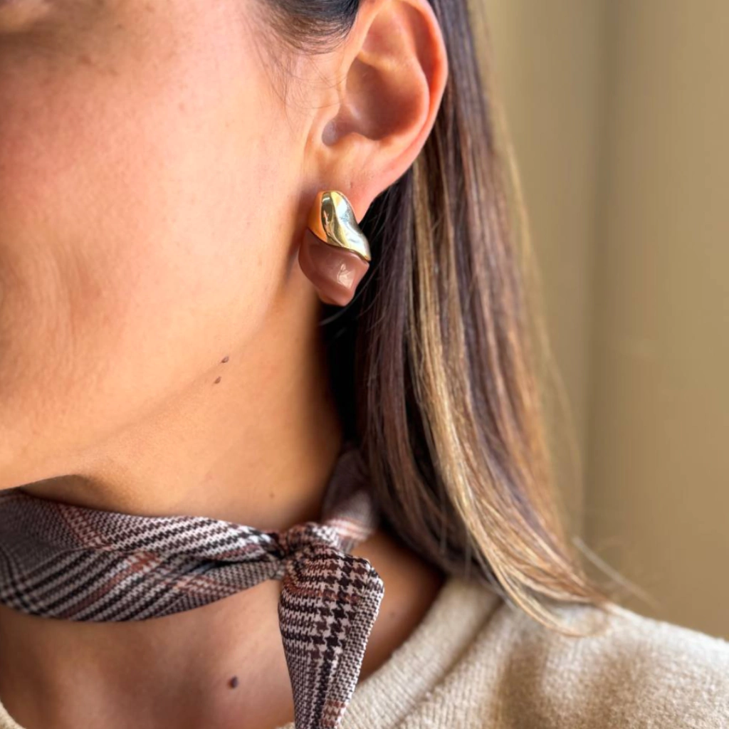 Brinco Orgânico Marron - Da nossa coleção Elementos, este brinco traz texturas que lembram os aspectos da terra, proporcionando sofisticação e atemporalidade. Com um elegante banho de ouro 18k, ele se destaca pela sua beleza única.